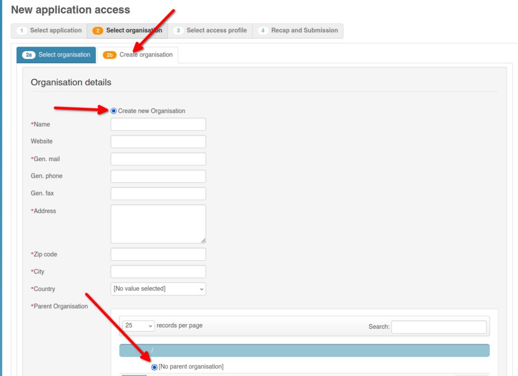 - Commencez par cliquer sur l’ongler 2b : Create Organisation