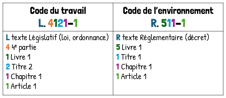 - Réglementaires (articles “R” et “D” issus principalement des décrets)