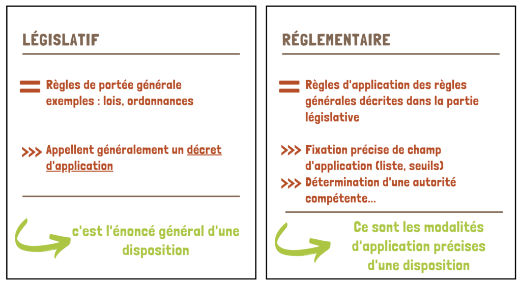 Les principales différences entre les champs législatifs et réglementaires peuvent se résumer de la manière suivante :