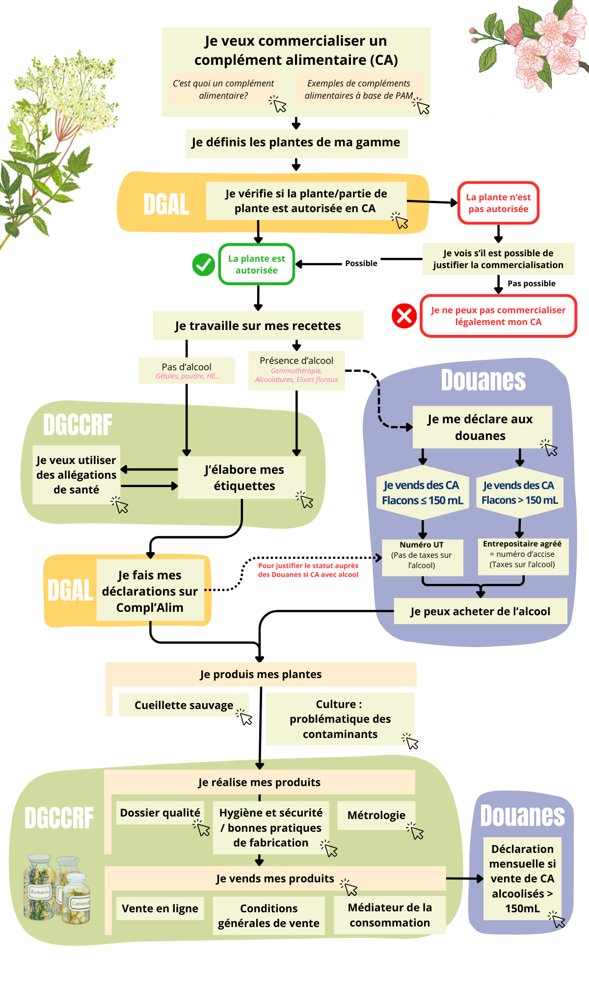 Établissement public à caractère administratif, elle est sous la tutelle des ministères de la santé, de l’environnement, de l’agriculture, et du travail. More a émis un avis concernant les avertissements et recommandations applicables à 118 plantes médicinales utilisées dans les compléments alimentaires« Les denrées alimentaires dont le but est de compléter le régime alimentaire normal et qui constituent une source concentrée de nutriments ou d’autres substances ayant un effet nutritionnel ou physiologique seuls ou combinés, commercialisés sous forme de doses, à savoir les formes de présentation telles que les gélules, les... More. Cette position étant reprise par la DGALDirection Générale de l'Alimentation, un service du Ministère de l'Agriculture More, les précautions et restrictions d’usage figurant dans ce document sont nécessaires pour pouvoir déclarer un complément alimentaire« Les denrées alimentaires dont le but est de compléter le régime alimentaire normal et qui constituent une source concentrée de nutriments ou d’autres substances ayant un effet nutritionnel ou physiologique seuls ou combinés, commercialisés sous forme de doses, à savoir les formes de présentation telles que les gélules, les... More.