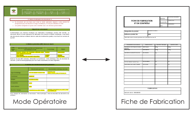 - Fiche de fabrication indiquant le n°de lot produit, avec les lots de matières premières