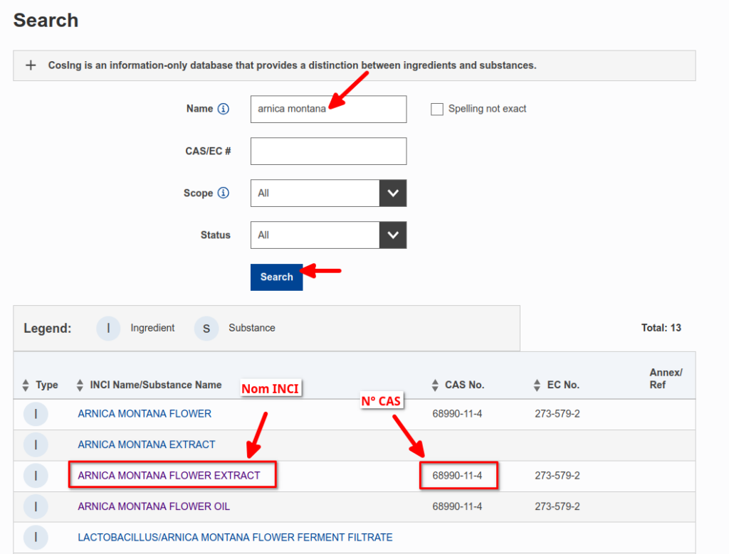 Lors de la notification sur le portail CPNP, vous devrez utiliser un nom INCINomenclature Internationale des Ingrédients de Cosmétiques More existant , par exemple : ARNICA MONTANA FLOWER EXTRACT